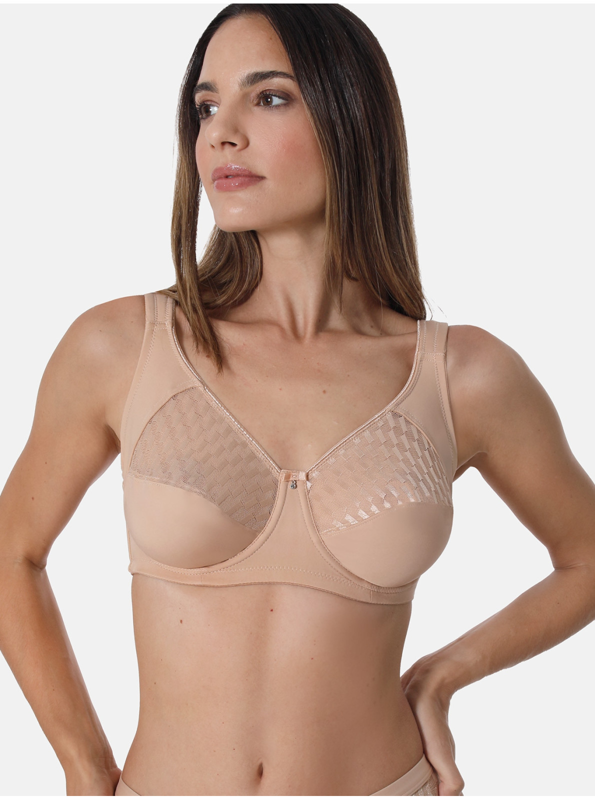 - inovativní spojení ramínka a zadního dílu podprsenky ve tvaru trojúhelníku - netvoří se ohyb